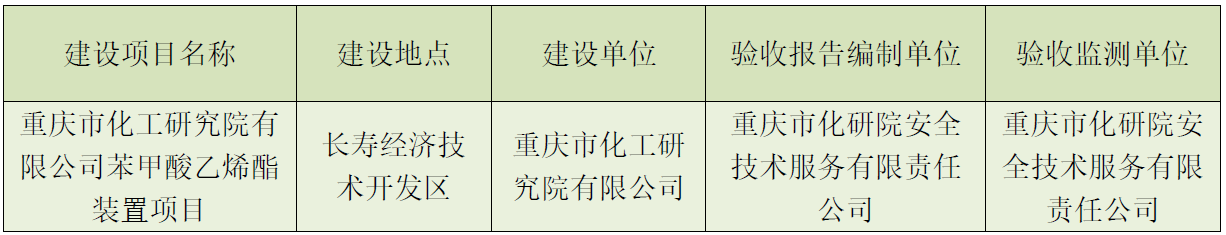 根据《国务院关于修改〈建设项目竣工环境保护管理条例〉的决定》(国务院令第682号),以及生态环境部《关于发布<建设项目竣工环境保护验收暂行办法>的公告》(国环规环评[2017]4号),现将“彩德网苯甲酸乙烯酯装置项目竣工环境保护验收监测报告”竣工环境保护验收公示如下: