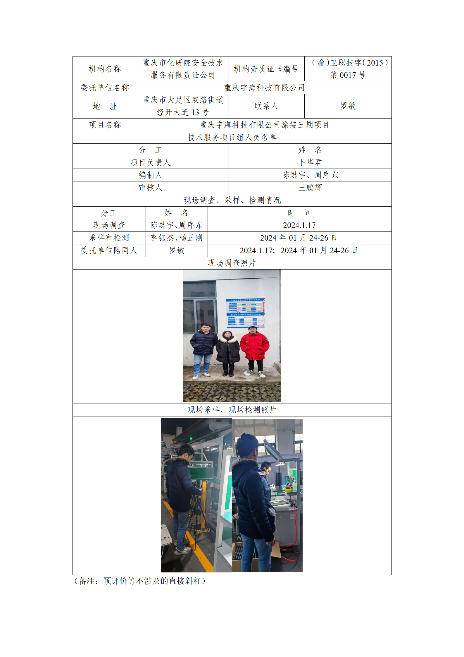 重庆宇海科技有限公司涂装三期项目职业病危害控制效果评价报告