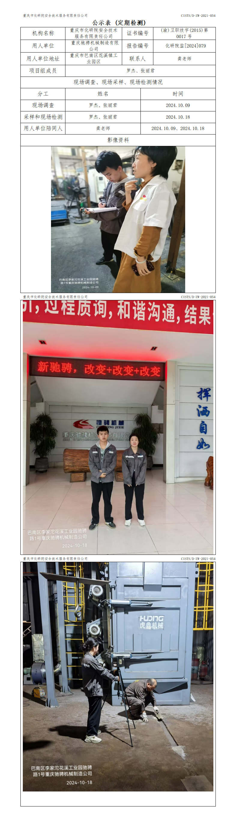 重庆弛骋机械制造有限公司定期检测