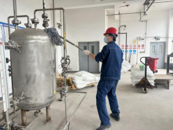 党员干部积极相应号召,带头在前,按照高标准、严要求,对生产现场的阀门法兰、仪器仪表、排水沟、储存罐、反应釜、管道等设施设备进行冲洗、清扫、擦拭,确保清洁全覆盖,做到不漏一处,不留死角。