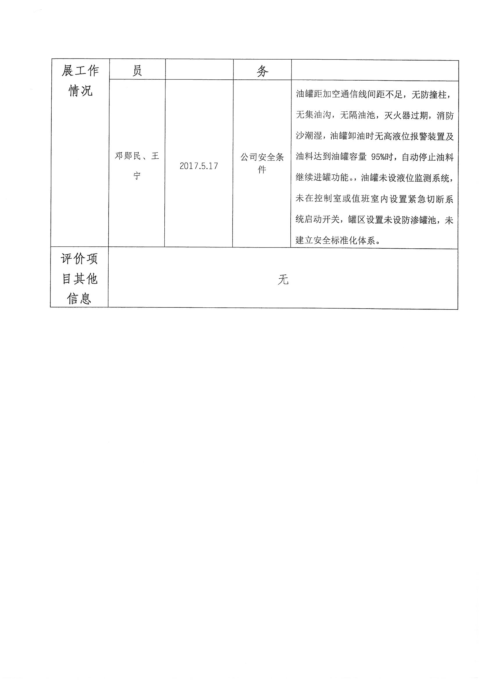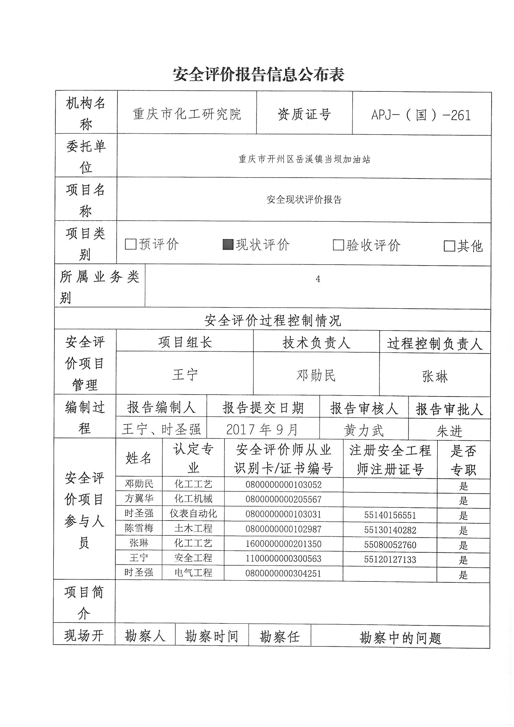 2017年第4季度重庆市开州区岳溪镇当坝加油站安全现状评价