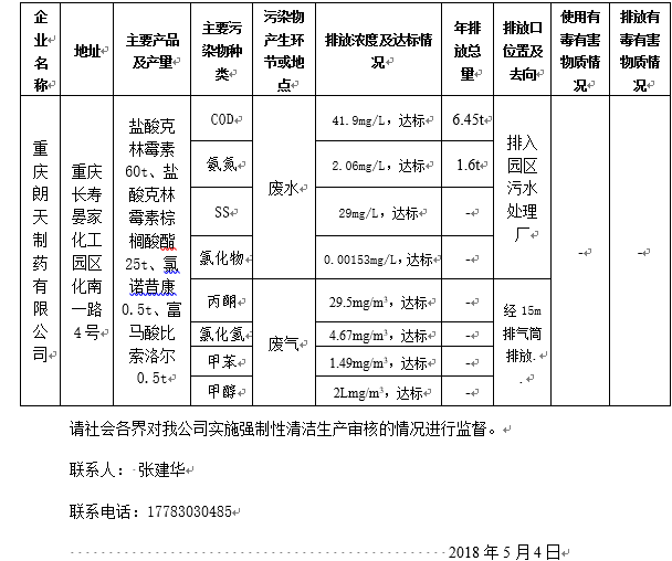 重庆朗天制药有限公司产排污公示