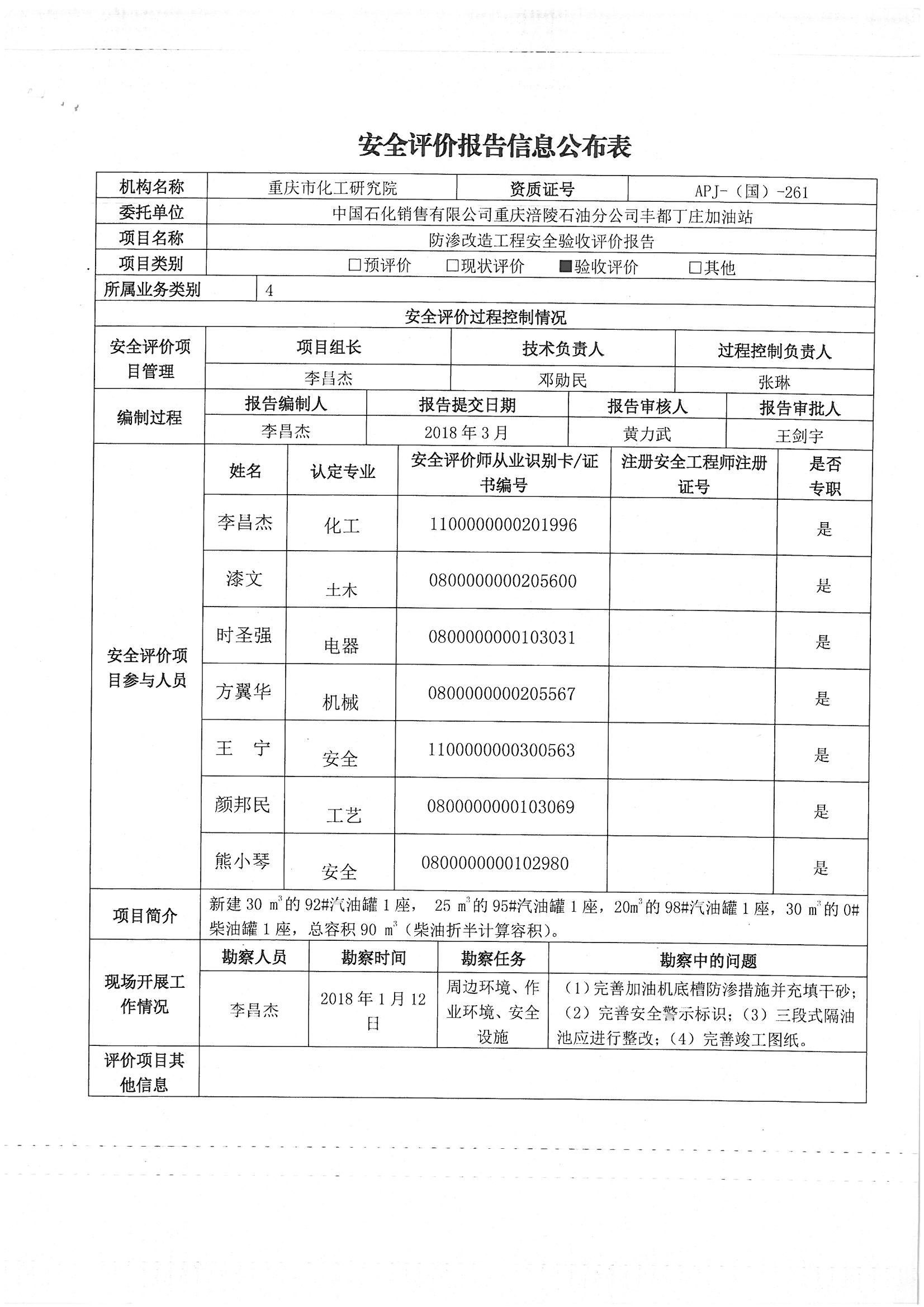 2018年第2季度中石化销售有限公司重庆涪陵石油分公司丰都丁庄加油站