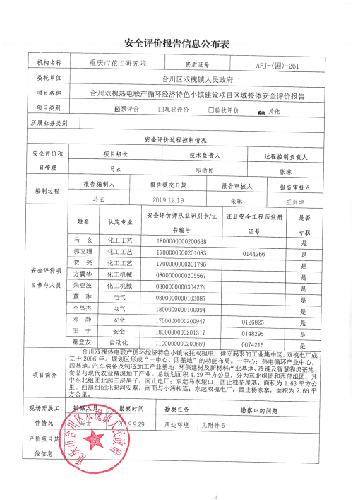 2019年4季度重庆市合川区双槐镇人民政府区域整体安全评价