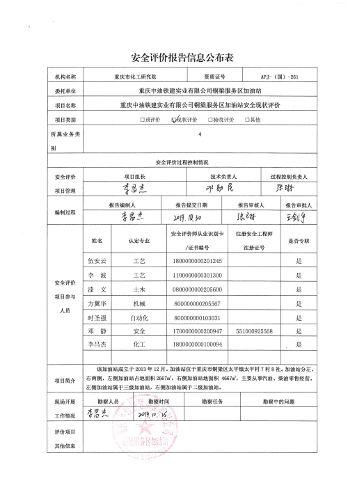 2019年4季度重庆中油铁建实业有限公司铜梁服务区加油站