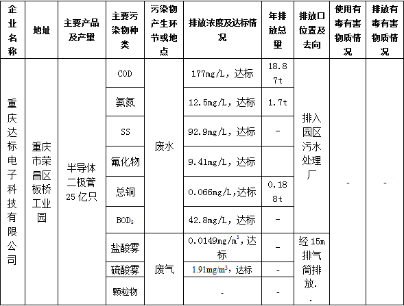 重庆达标电子科技有限公司产排污公示