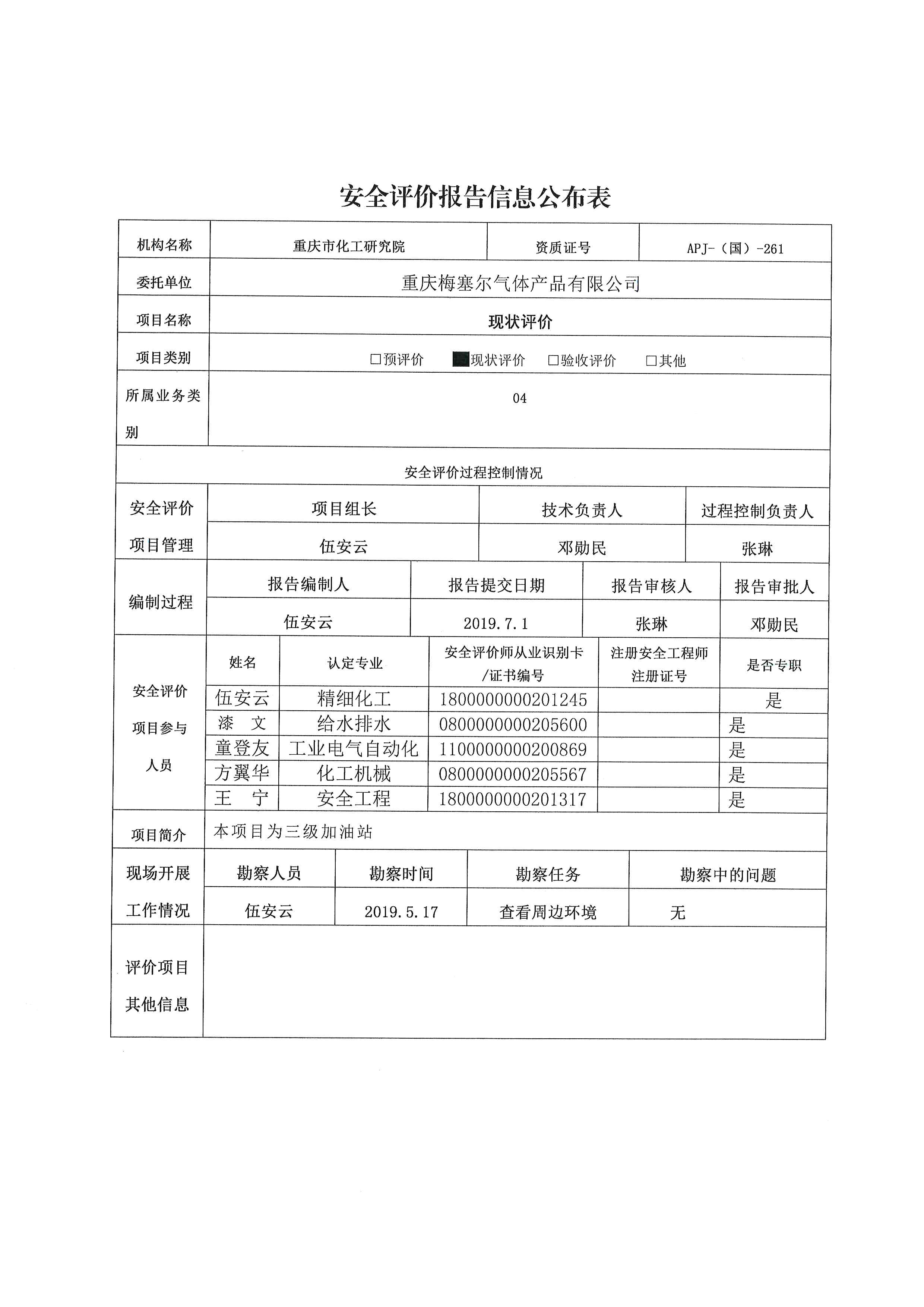 2019第3季度重庆梅塞尔气体产品有限公司