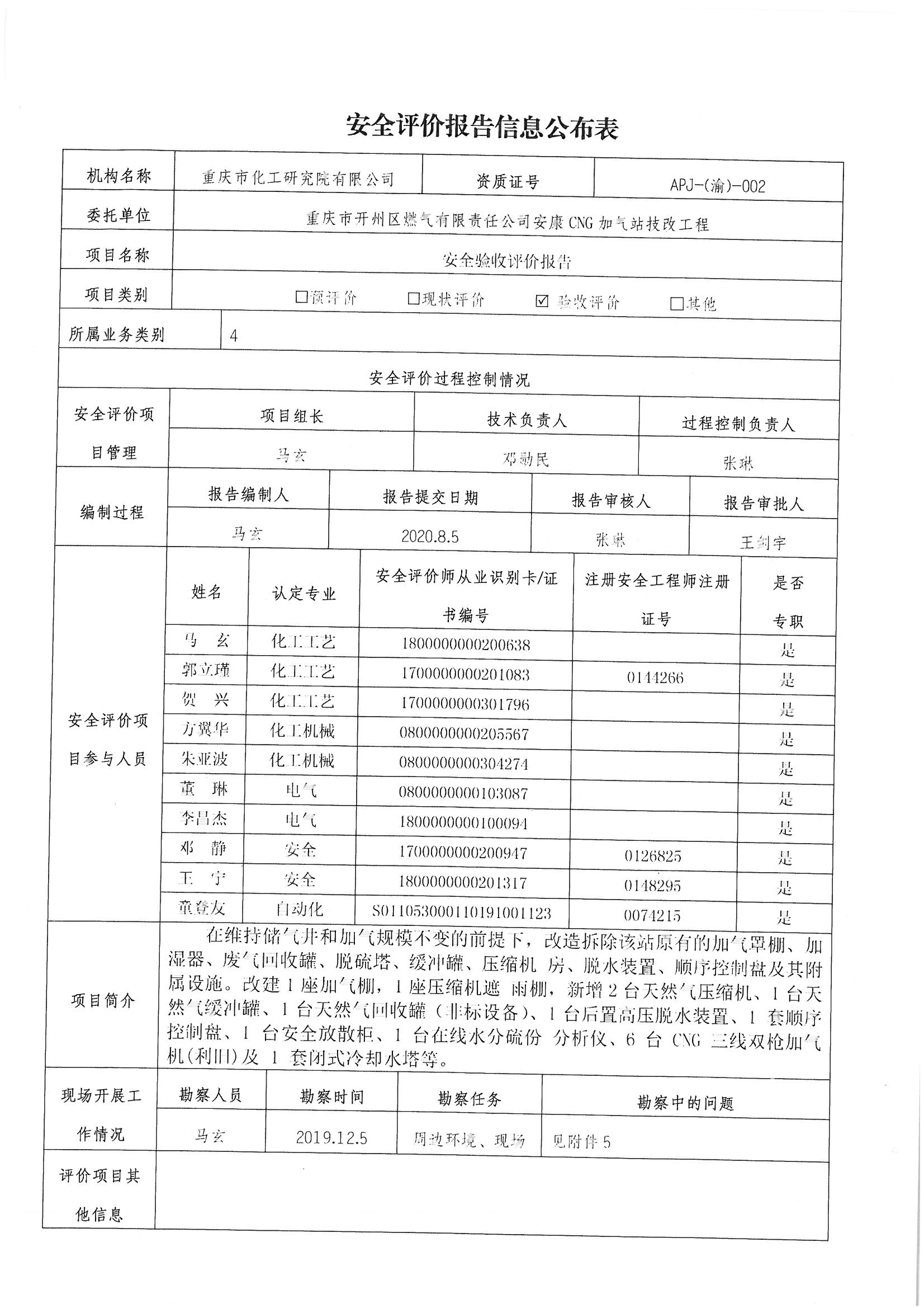 2020第3季度重庆市开州区燃气有限责任公司安康CNG加气站技改工程