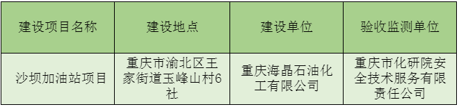 重庆海晶石油化工有限公司沙坝加油站项目竣工环境保护验收公示