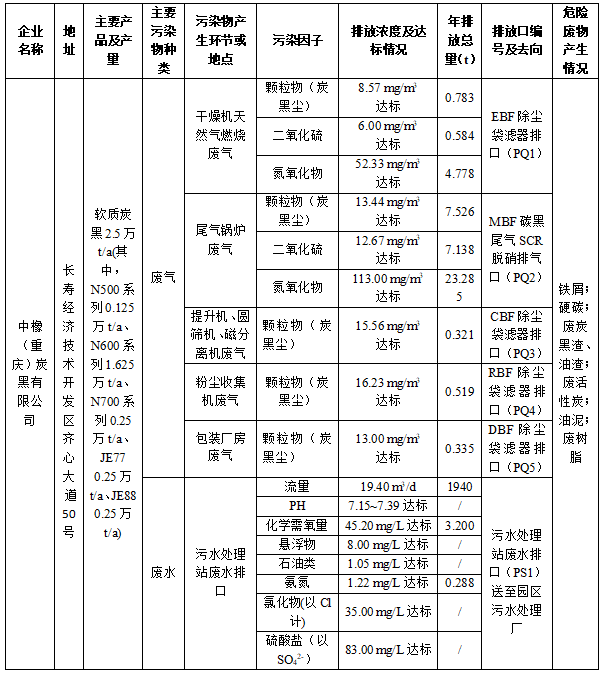 根据“重庆市生态环境局关于印发《重庆市生态环境局办公室关于做好2021年强制性清洁生产审核工作的通知》的通知”渝环办〔202124 号要求,中橡(重庆)炭黑有限公司将在2021年实施强制性清洁生产审核工作。现根据《清洁生产审核办法》(国家发改委、原环保部第38号令)第十一条要求,现将我司产排污情况进行