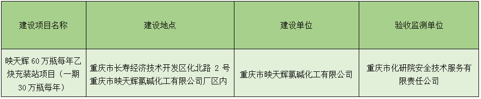 重庆市映天辉氯碱化工有限公司映天辉60万瓶每年乙炔充装站项目(一期30万瓶每年) 竣工环境保护验收公示