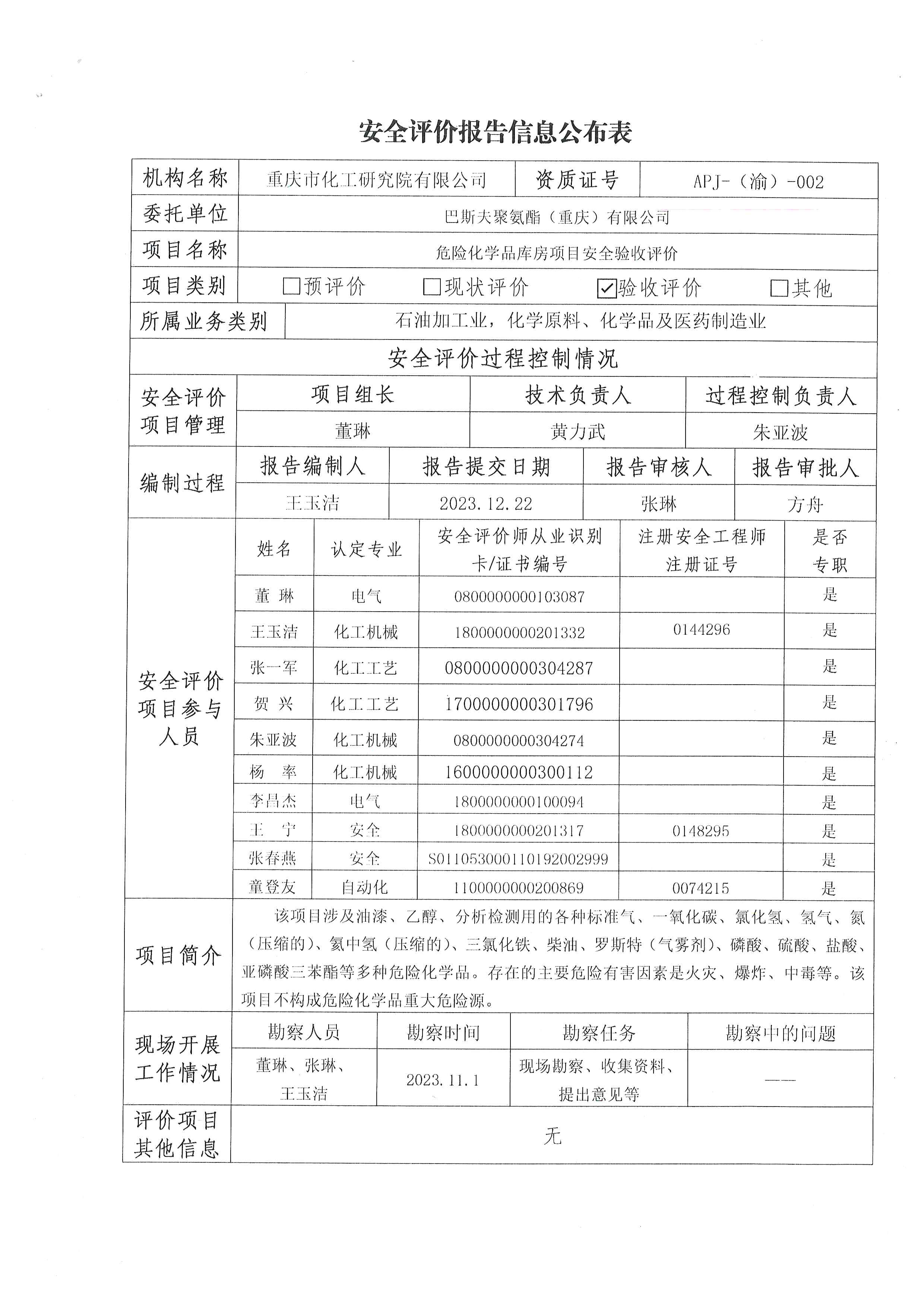 2024年1季度巴斯夫聚氨酯(重庆)有限公司信息公布表