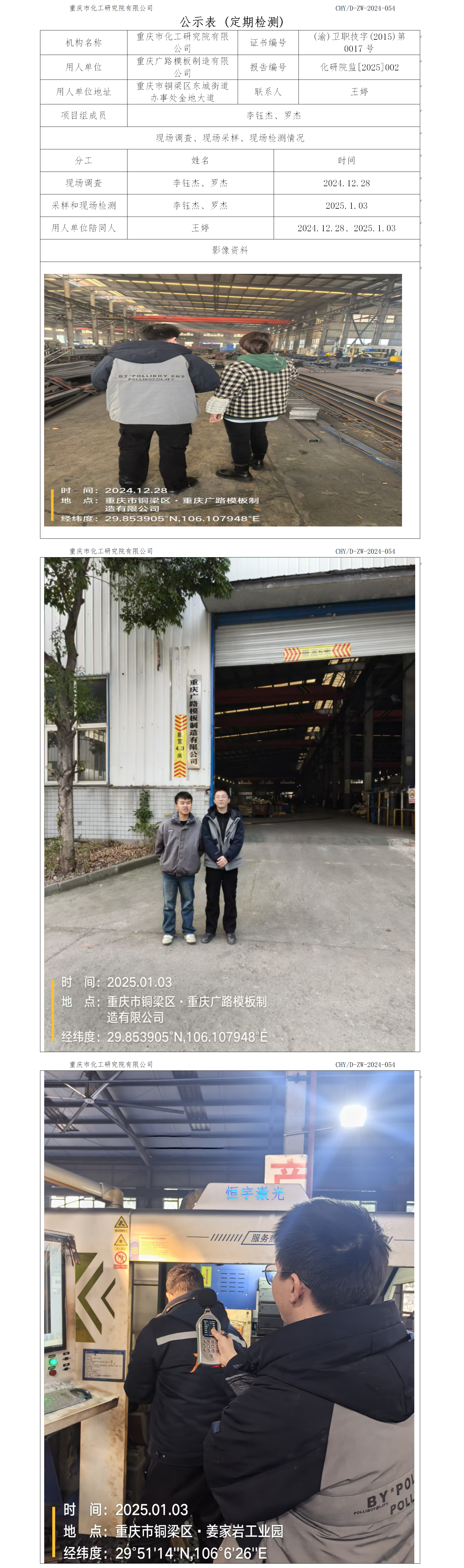 重庆广路模板制造有限公司定期检测
