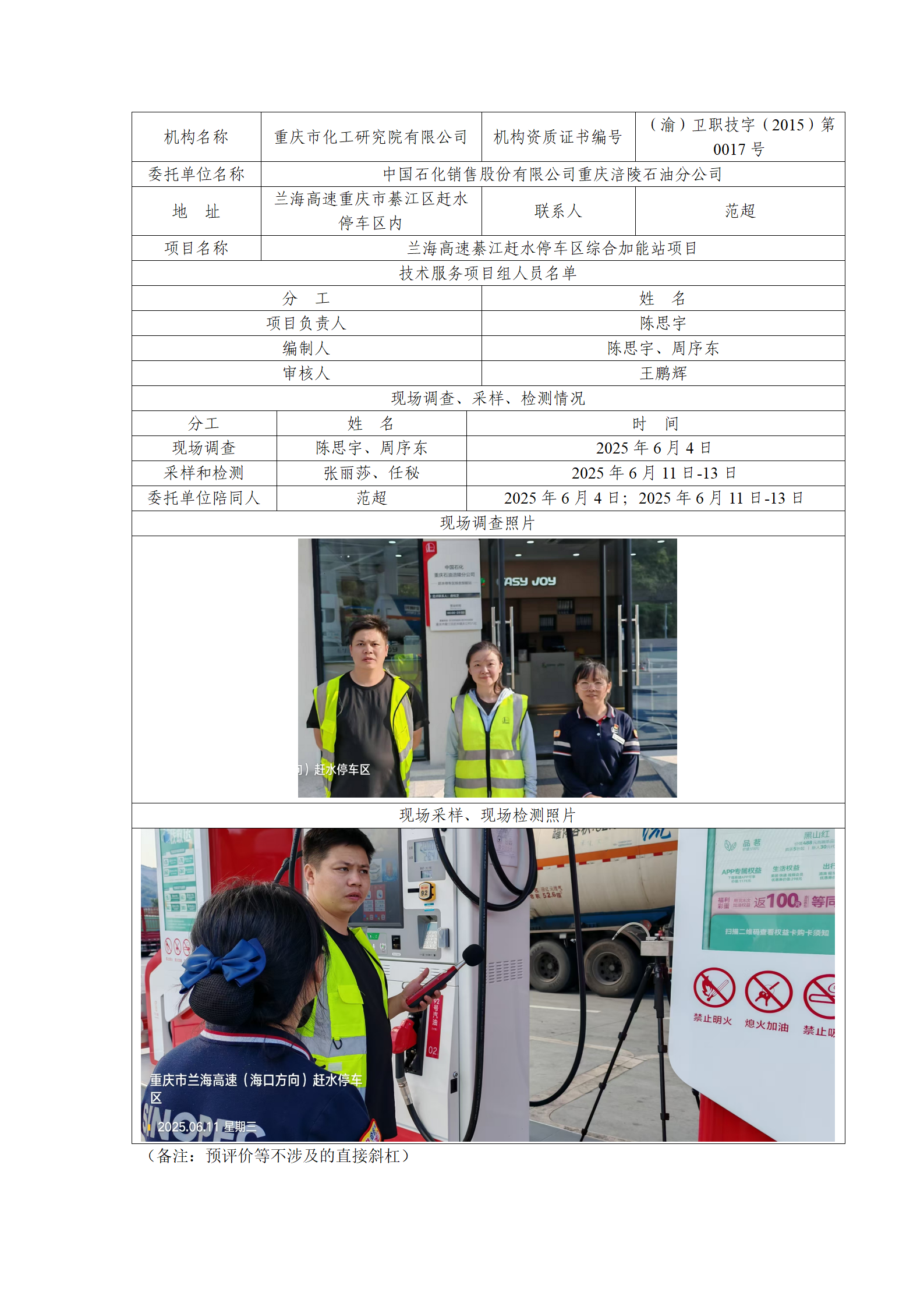中国石化销售股份有限公司重庆涪陵石油分公司兰海高速綦江赶水停车区综合加能站项目职业病危害控制效果评价